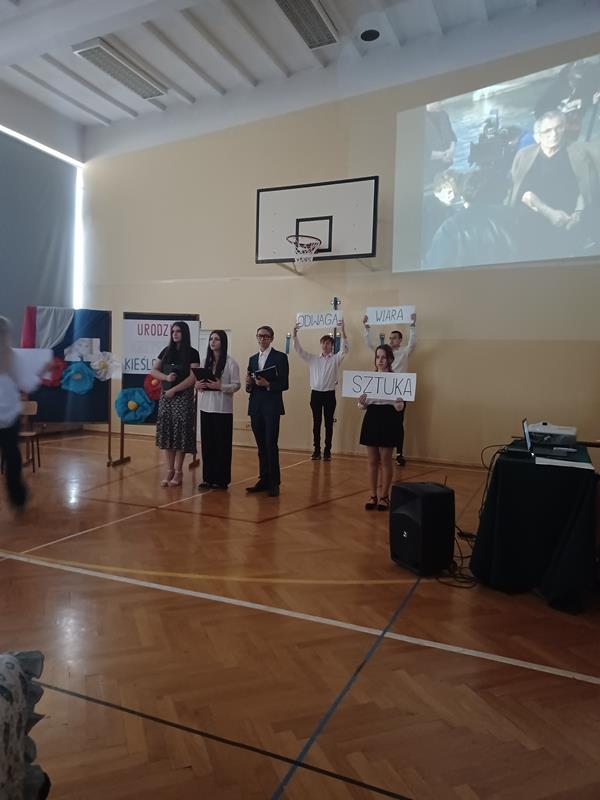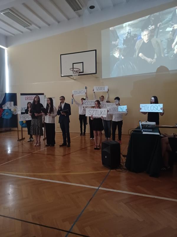 Uczniowie zaprezentowali dorobek artystyczny reżysera oraz ciekawostki związane z życiem i twórczą pracą Krzysztofa Kieślowskiego.