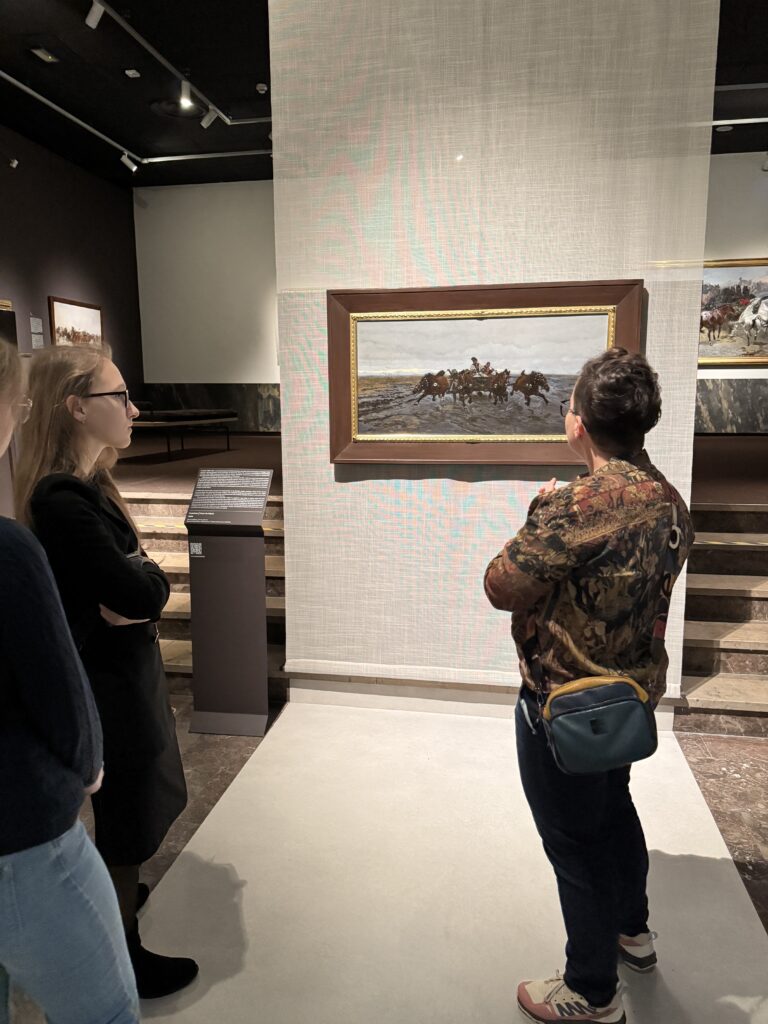 Chętni uczniowie mieli także możliwość odwiedzenia niewielkiej wystawy w Galerii Malarstwa Polskiego XIX wieku w Sukiennicach, poświęconej 4-letniej renowacji „Czwórki” J. Chełmońskiego.