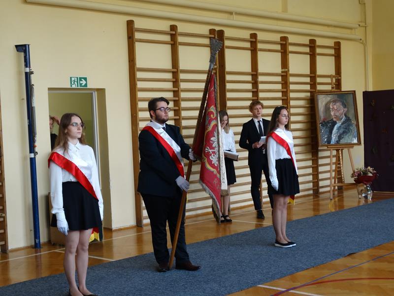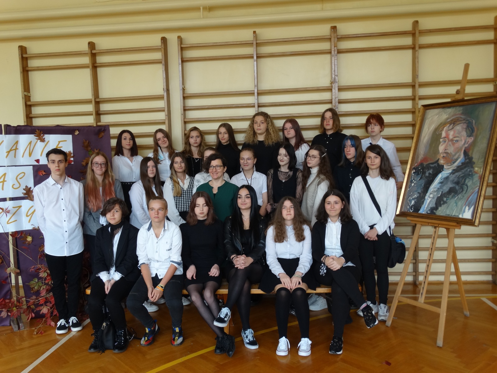 Uroczystość ślubowania zakończono złożeniem kwiatów pod popiersiem Patrona Szkoły Stanisława Wyspiańskiego.
