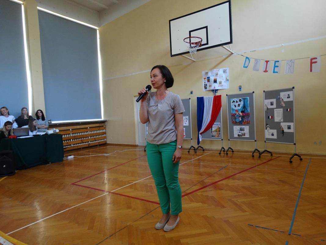 Celem spotkania było poszerzenie wiedzy o Francji oraz przybliżenie jej kultury. Cała społeczność szkolna została zaproszona do pięknie udekorowanej, pracami uczniów, sali gimnastycznej.