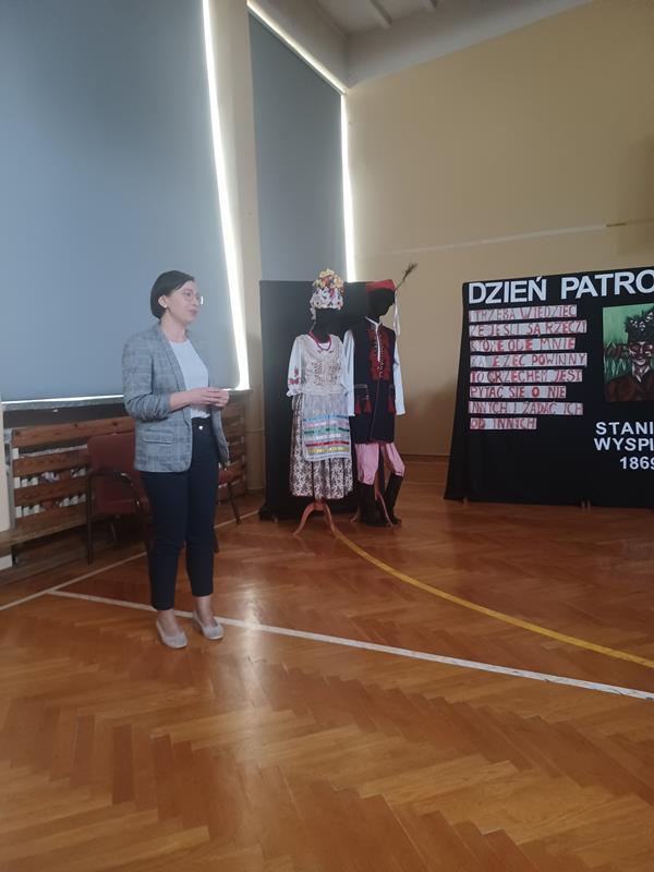 Okazja była szczególna, bowiem w styczniu bieżącego roku wypadła 155 rocznica urodzin autora arcydramatu Wesele. Uczniowie klasy 2 TO recytowali wiersze poety, przygotowali wywiad ze Stanisławem Wyspiańskim oraz prezentację ukazującą obszernie twórczość Wyspiańskiego, ciekawostki i ważne fakty z życia prywatnego, które złożyły się na wielowymiarowy portret jednej z najważniejszych postaci polskiego modernizmu.