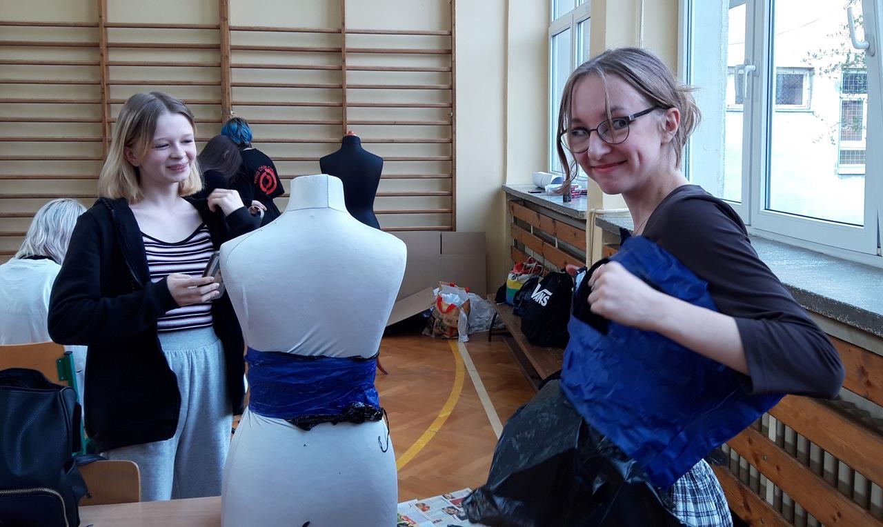 Z okazji Dnia Ziemi w czwartek odbyła się w naszej szkole impreza – konkurs zatytułowany: „Heart for Earth: Reborn”. Polegał on na wykonaniu w ciągu 4 godzin projektów odzieżowych (Technikum) i akcesoriów (Liceum) z różnego rodzaju odpadków, w technice recycling – upcycling.
