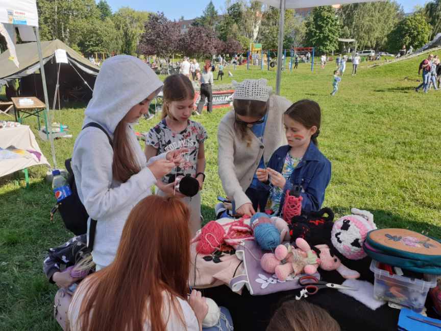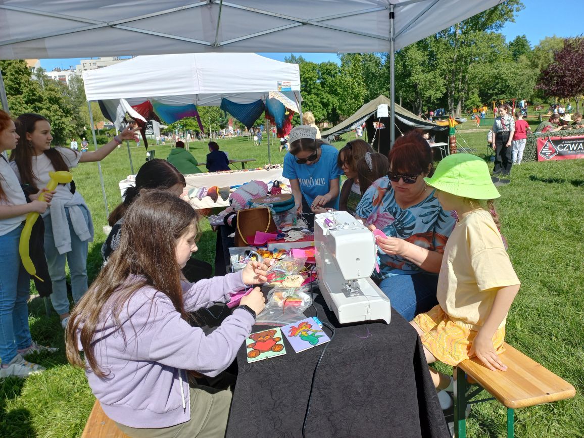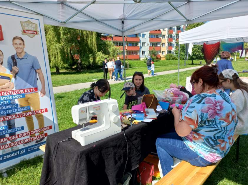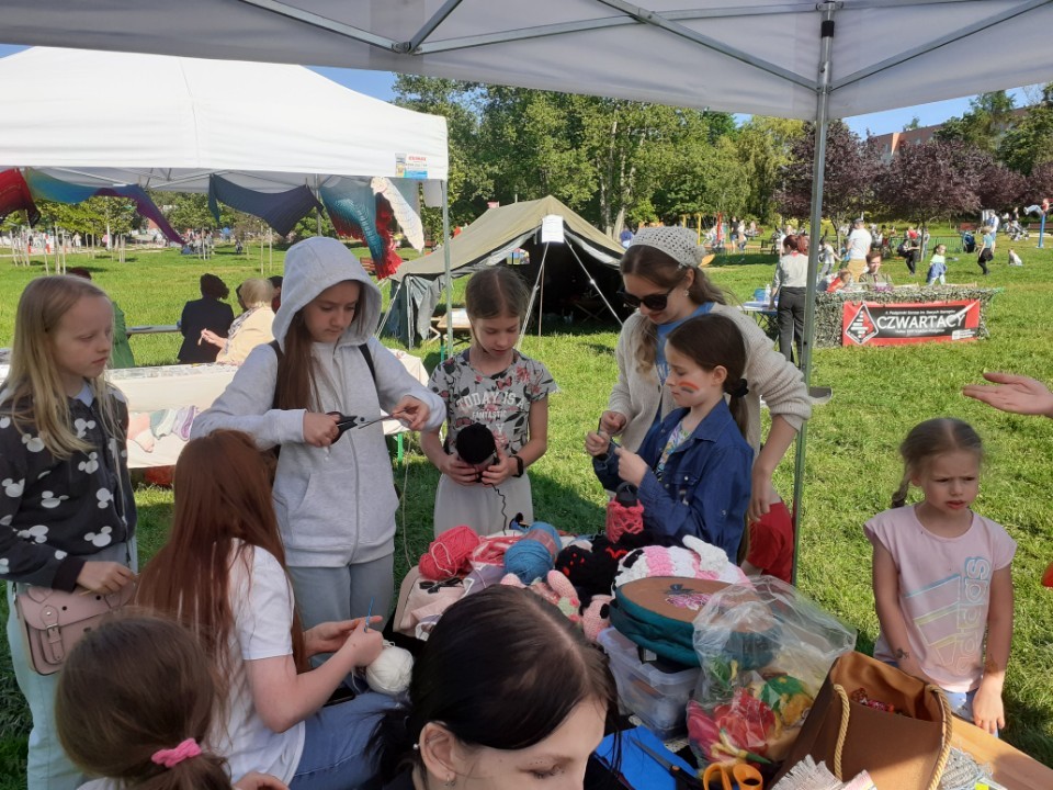 Pani Dorota Jaracz i pani Izabella Wyrwik oraz uczennice Daria Czarnik z klasy 4TPA i Anna Pashynska z klasy 2TO przygotowały na tę okoliczność zajęcia pt. „Igłą wyczarowane”. Warsztaty spotkały się z dużym zainteresowaniem dzieci. Uatrakcyjniły wydarzenie i wniosły wiele radości.