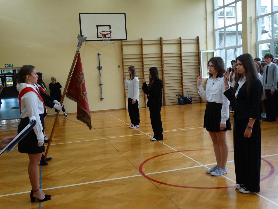 13 października 2023 roku w naszej szkole odbyło się uroczyste ślubowanie klas pierwszych. Uczniowie czterech klas: liceum ogólnokształcącego i technikum odzieżowego, zostali oficjalnie przyjęci w poczet uczniów naszej szkoły.  Przysięgę złożono na Sztandar Szkoły, było podniośle i uroczyście.