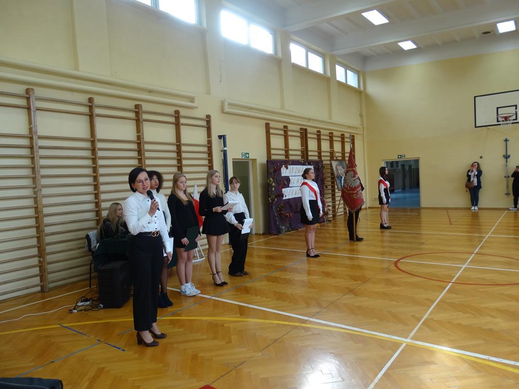 Pani Dyrektor Dorota Potoczny w swoim przemówieniu najwięcej czasu poświęciła doniosłości tej chwili i znaczeniu każdej przysięgi, życzyła młodzieży sukcesów w nauce, zrealizowania planów i marzeń.