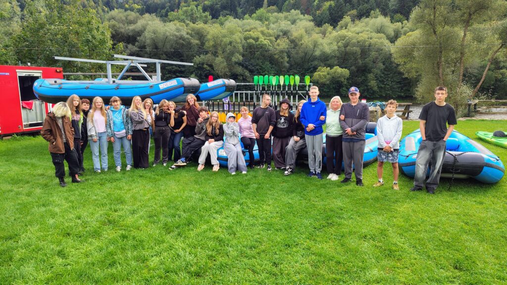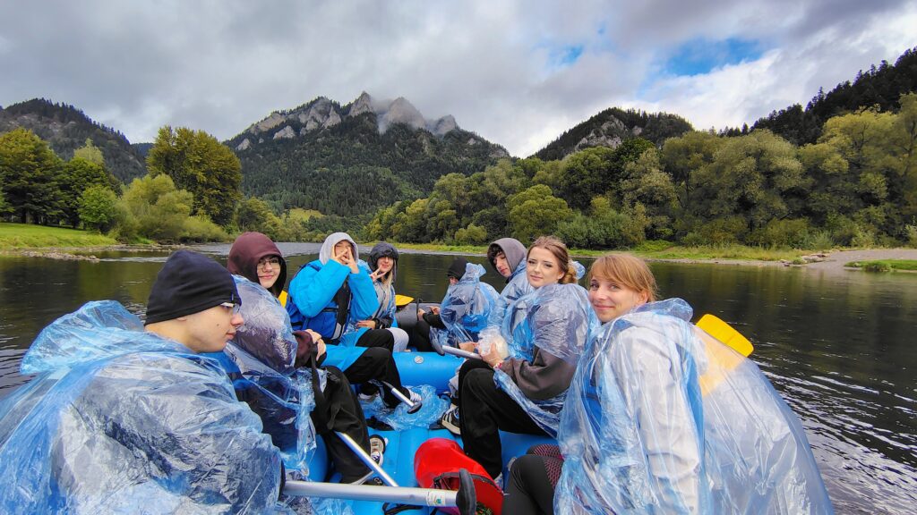 17 września uczniowie klas 2LA i 3LA wzięli udział w wyjątkowej wycieczce – spływie pontonami po Dunajcu. Trasa rozpoczęła się w Niedzicy i trwała około 3 godziny. Pogoda była kapryśna – trochę deszczu, trochę słońca – ale dobre humory i energia całej grupy sprawiły, że daliśmy radę!