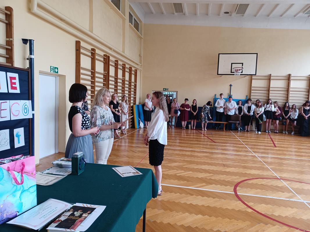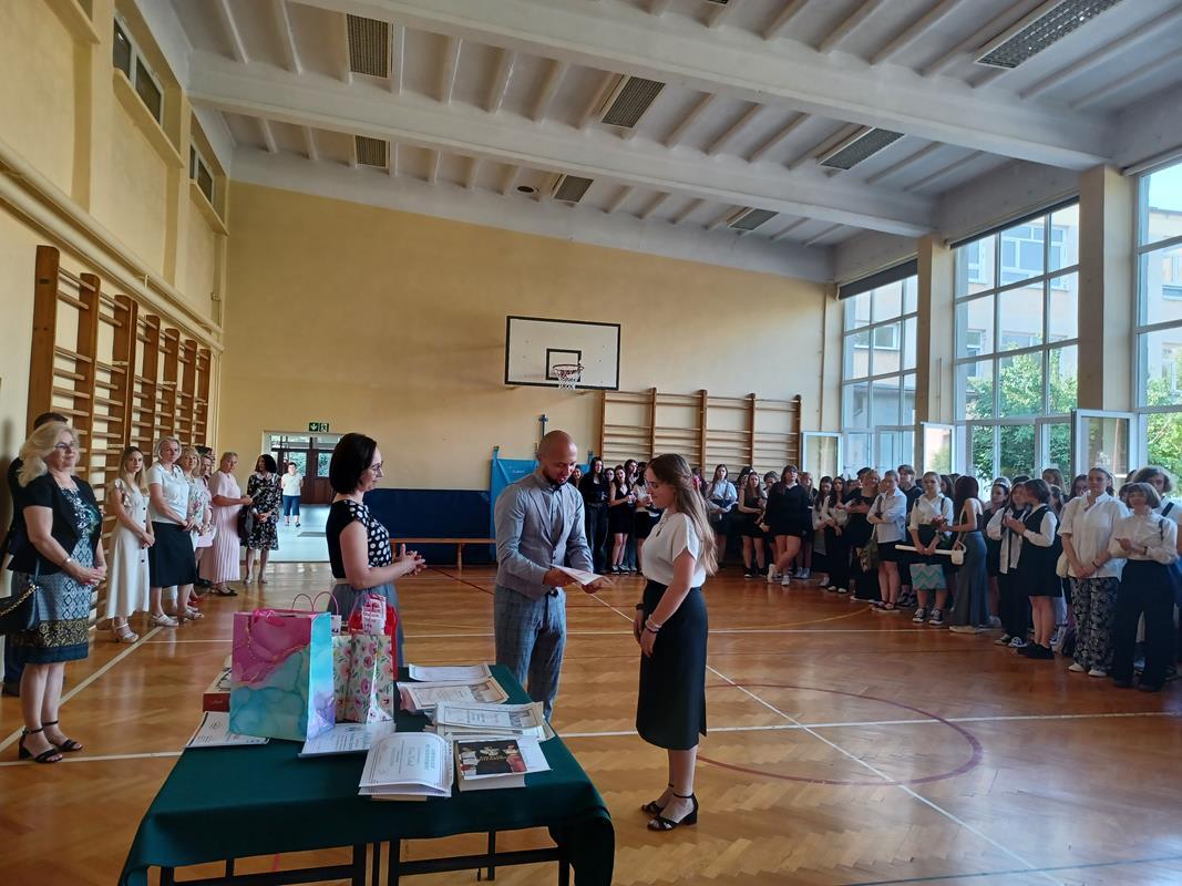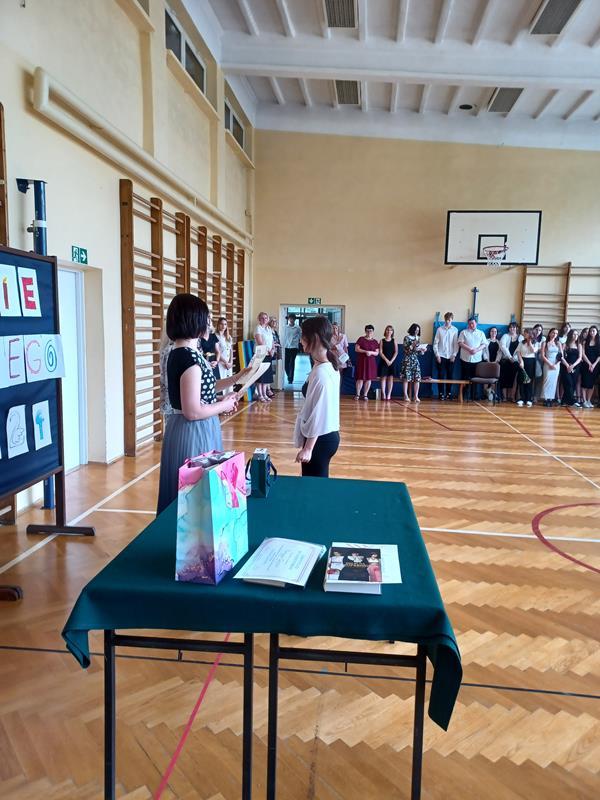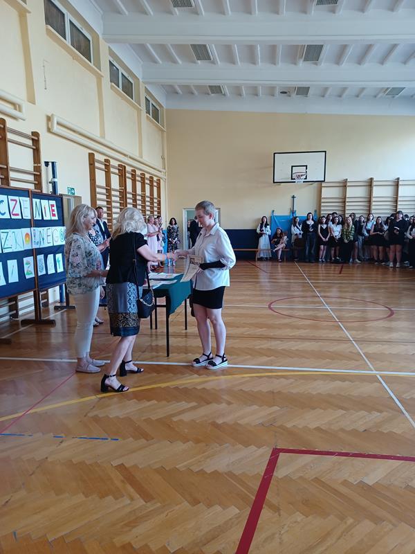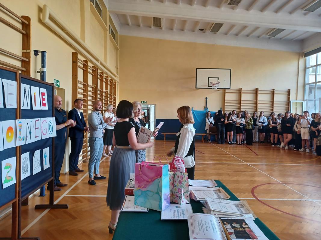 Pani Dyrektor mgr Dorota Potoczny podziękowała młodzieży za bardzo dobre wyniki w nauce, wzorowe zachowanie, udział w olimpiadach, konkursach, pracy na rzecz szkoły. Wyróżnieni otrzymali dyplomy oraz upominki. Samorząd Uczniowski w imieniu wszystkich uczniów i rodziców złożył podziękowania Dyrekcji i Nauczycielom za miniony rok szkolny.